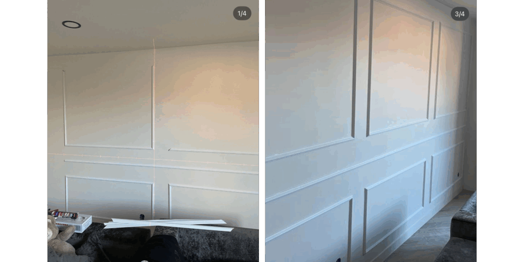 “Voor dit project hebben wijmoderne lambrisering aangebracht, wat direct sfeer en karakter aan de ruimte geeft. Er is enorm veel mogelijk met dit soort afwerkingen – denk aan geïntegreerde ledstrips, sfeerverlichting, of weggewerkte stopcontacten en schakelaars. Praktisch én stijlvol dus!“