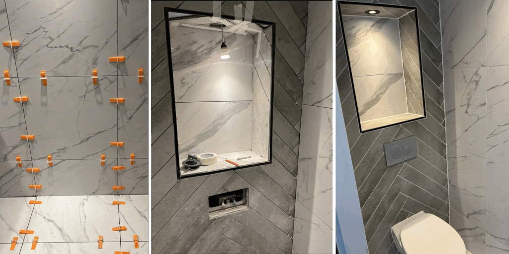 “Voor dit project hebben wij het toilet volledig vernieuwd. Van het slopen van de oude ruimte tot het plaatsen van nieuw sanitair, tegelwerk en afwerking – alles is met zorg uitgevoerd. Ook denken we mee over slimme details, zoals inbouwreservoirs, nisjes of subtiele verlichting. Een kleine ruimte met groots effect!“